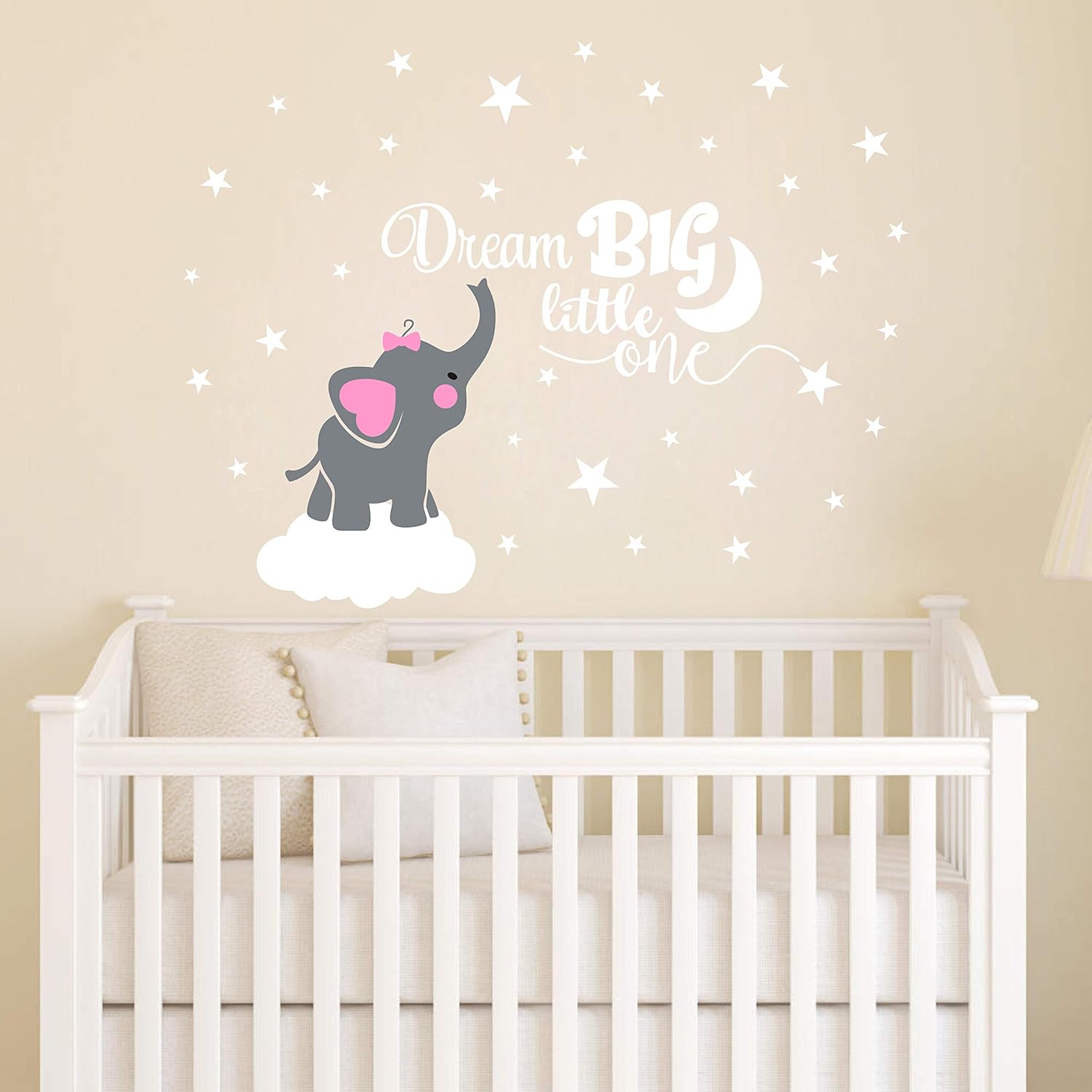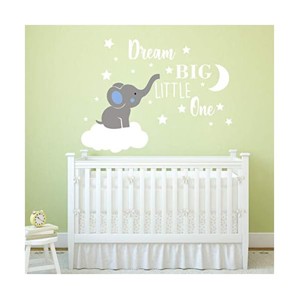 Amazon Com Yyart Elephant Nursery Wall Decal Dream Big Little One Decal Elephant Sticker Baby Boy Girls Room Decor Nursery Decals Cloud And Star Nursery A42 White Home Kitchen