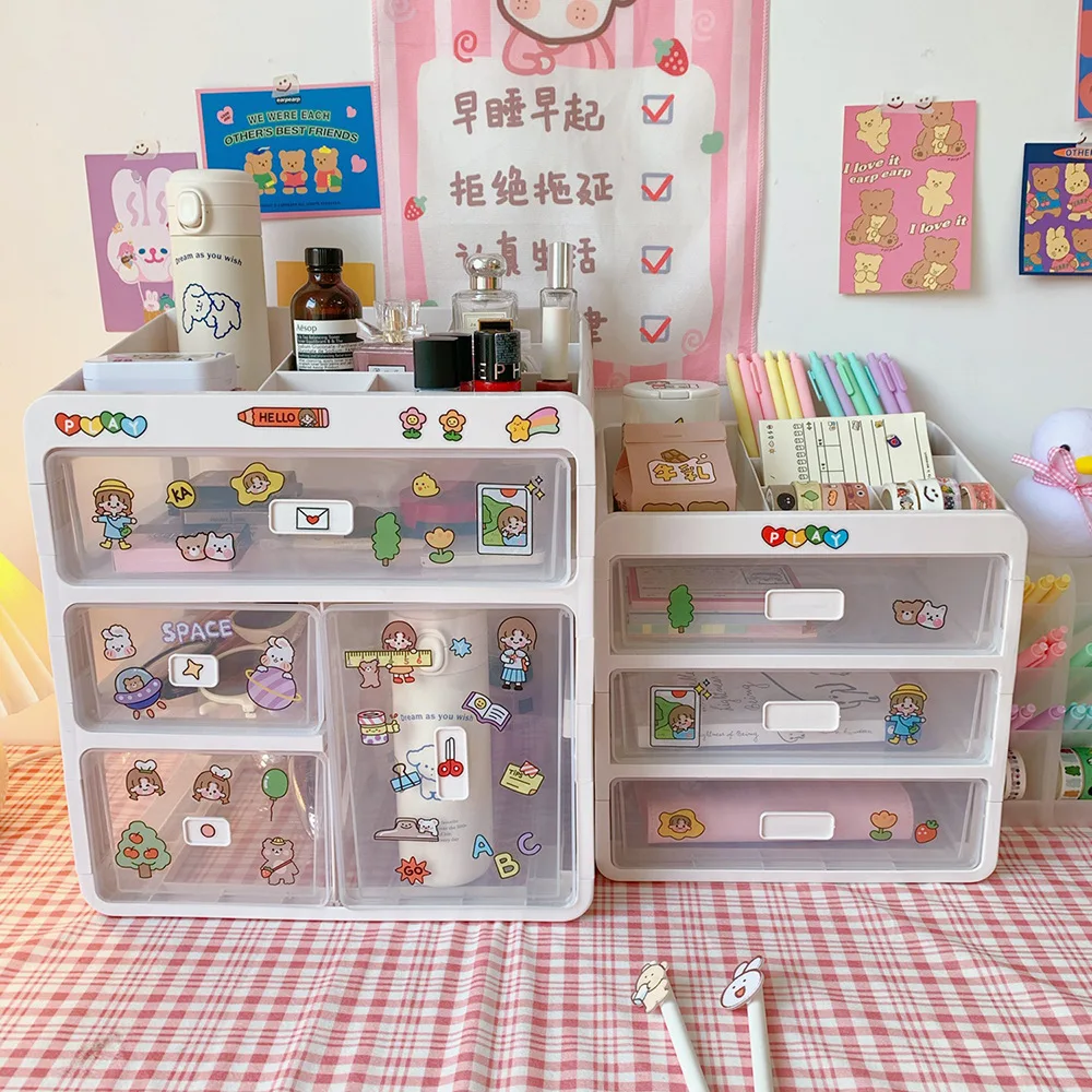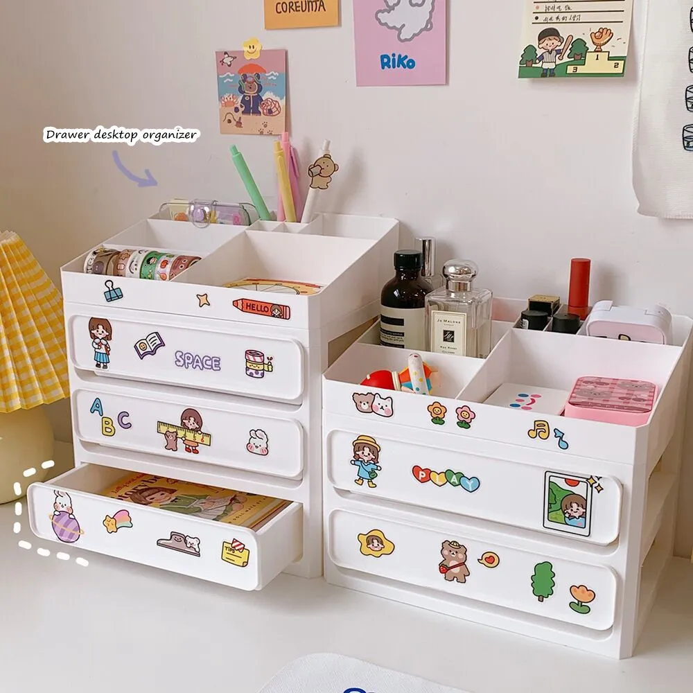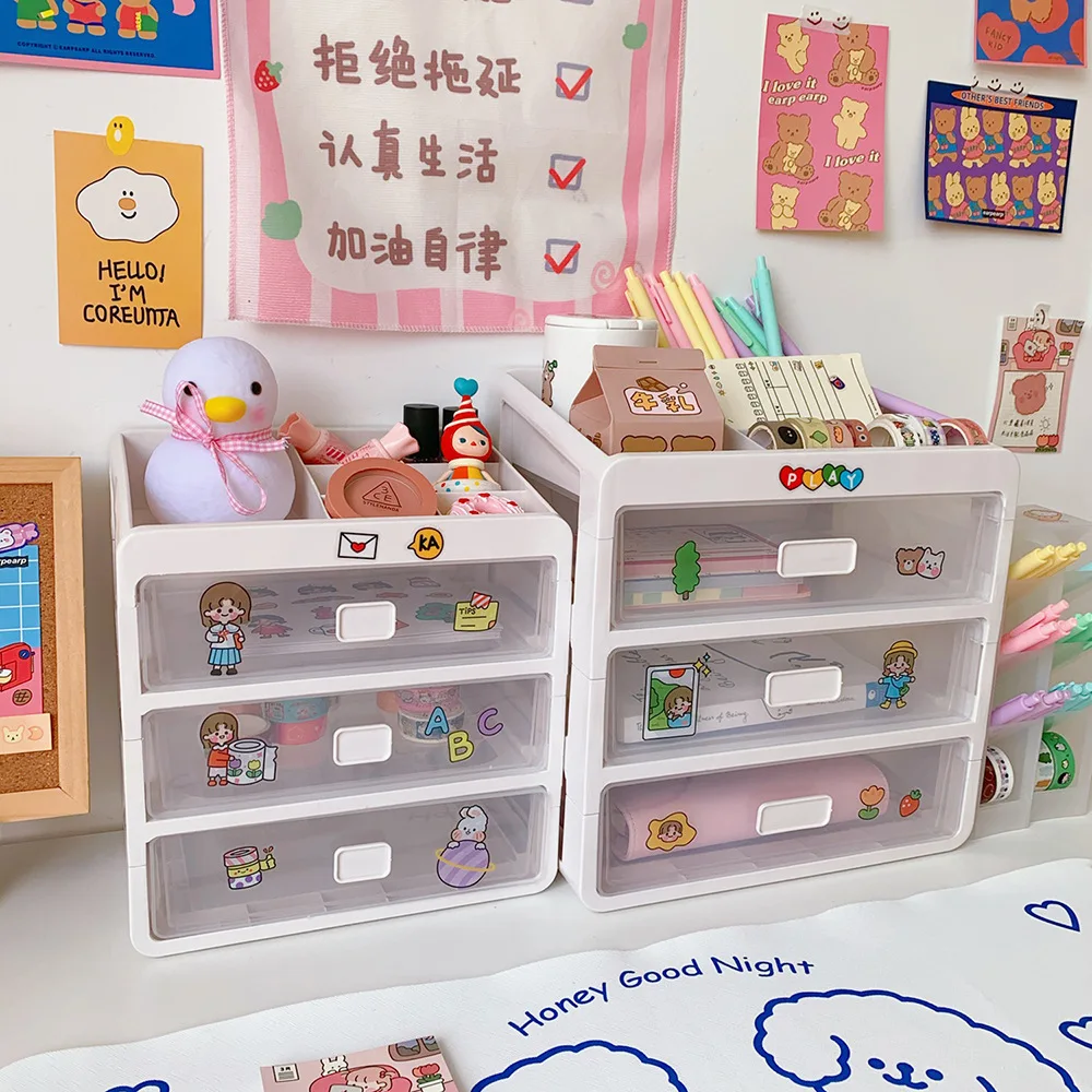 Minkys Kawaii Creative 1 2 3 Layers Drawer Desktop Storage Box Desk Organizer Holder Free Sticker School Office Stationery Big Sale 543f68 Cicig