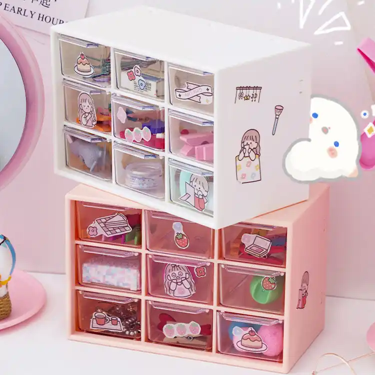 Cute White Pink 9 Grid Abs Drawer Desktop Organizer Desk Storage Box Free Sticker School Transparent Desk Stationery Accessories Stationery Holder Aliexpress