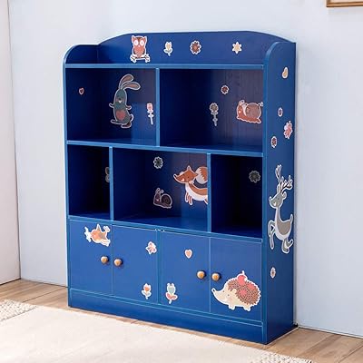 Buy Emall Life Kids Large Bookcase With Diy Sticker Book And Toy Storage Organizer Bookshelf With 4 Layers And Doors For Girls Boys Bedroom Blue Online In Indonesia B07g33hmzd