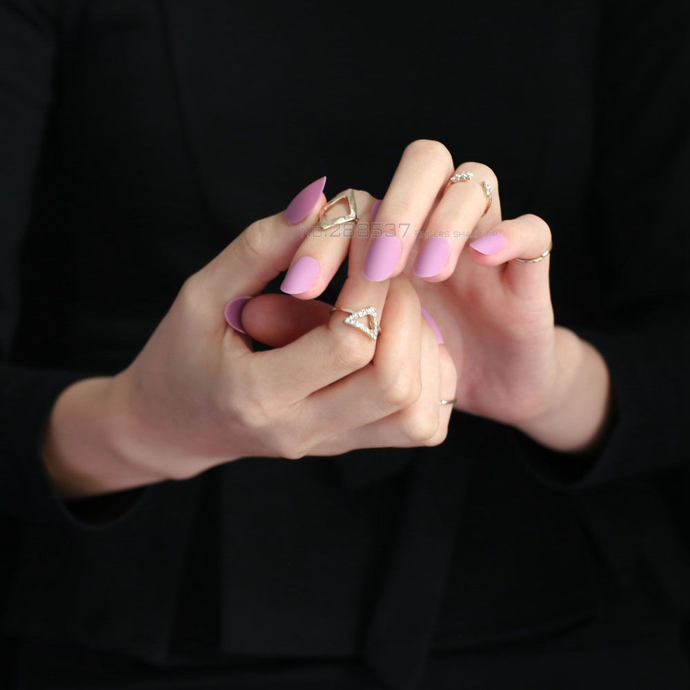 Fashion Matte Nail Taro Purple Stiletto Frosted False Fake Nails Light Purple Pink Color Pointed Salon Press On Nail Art Tips False Nails Aliexpress