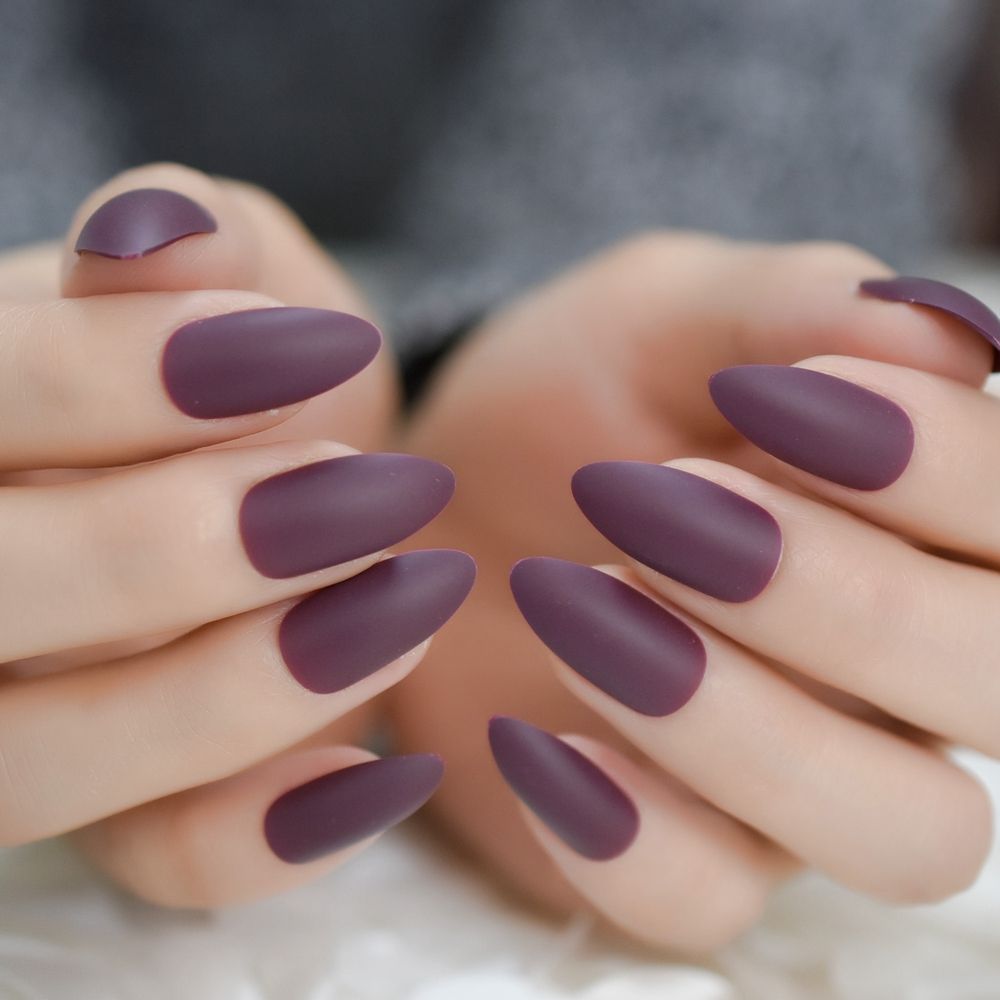 Matte Frosted Press On Nail Almond Stiletto Shape Fake Nails Candy Purple Faux Ongles Full Cover Abs False Nails Artificial Tips False Nails Aliexpress