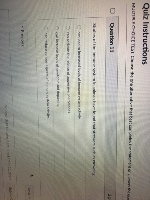 Solved Quiz Instructions Multiple Choice Test Choose The Chegg Com