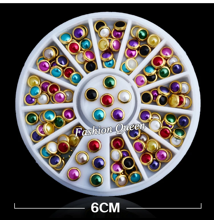 Hot Sale Colorful Half Round Nail Pearls With Metal Studs Rhinestones Wheel Nail Decoration Supplies Nail Pearl Round Nailsnail Decoration Pearl Aliexpress