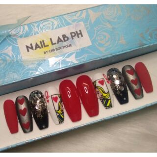Queen Of Hearts Fake Faux False Customize Press On Or Glue On Nails Handpainted Shopee Philippines