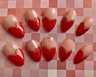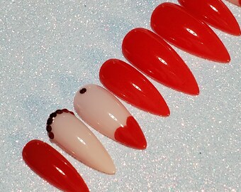 Queen Of Hearts Nails Press On Nails False Nails Hand Etsy